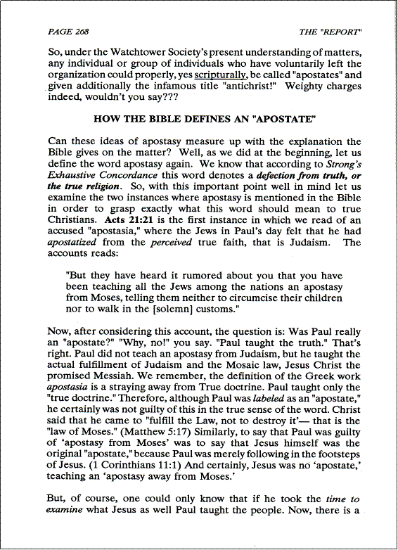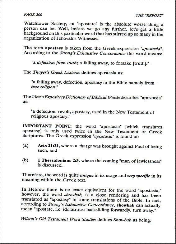 We all recall, the Watchtower Society has made it clear that the most loathsome, the most despicable character, the one to be “hated” by all Christians, is an “apostate.” To the Watchtower Society, an “apostate” is the absolute worst thing a person can be. So, let’s get a little background on this particular word (apostasy) that has stirred up so many in the organization of Jehovah’s Witnesses. Let’s pay attention to the following information, as it discusses this topic, in detail, for our benefit. |
