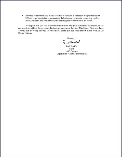 (The UK’s Guardian News publicly exposed the Watchtower Society’s hidden UN-NGO status on Monday, October 8th, 2001 which resulted in the immediate-next day, voluntary withdrawal of the Watchtower Society from UN-DPI Association. See link: http://www.guardian.co.uk/uk_news/story/0,3604,565005,00.html ) |